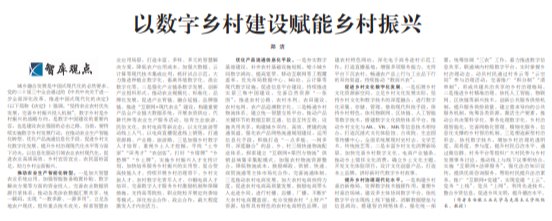 7月15日至18日,中国共产党第二十届中央委员会第三次全体会议在北京胜利举行。学习好贯彻好党的二十届三中全会精神是当前和今后一个时期全党全国的一项重大政治任务。《江西日报》约请专家学者对全会精神进行宣传阐释。ac米兰马克思主义学院郑洁教授以《以数字乡村建设赋能乡村振...
