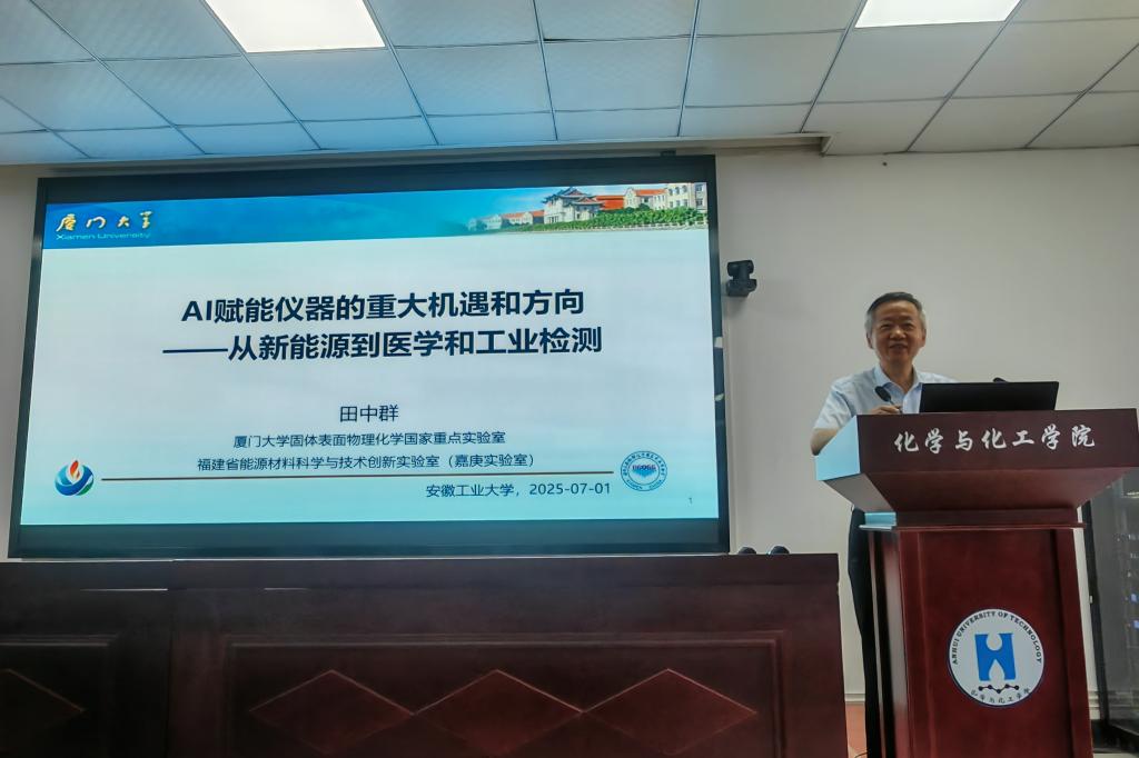 7月1日,中国科学院田中群院士应邀作“AI赋能仪器的重大机遇和方向——从新能源到医学和工业检测”专题报告。校党委副书记、校长曾杰主持,冶金工程学院、材料科学与工程学院、化学与化工学院、计算机科学与技术学院师生100余人现场聆听。田中群院士从AI赋能仪器的重大机遇和方...