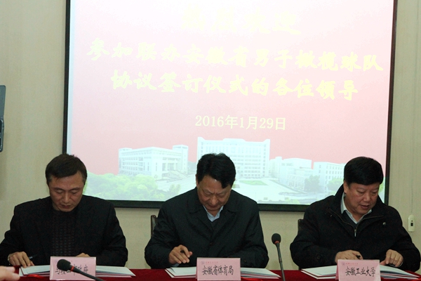 高维岭、李家新、侯军代表三方分别在协议书上签字。马鞍山市政府副秘书长刘方文,省体育局相关职能处室、市体育局、市教育局及学校相关部门、单位等负责同志参加了协议签订仪式。