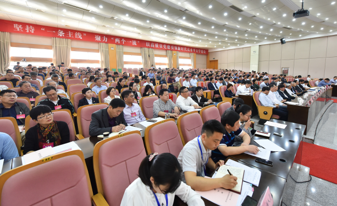 大会主题是:以习近平新时代中国特色社会主义思想为指导,深入贯彻落实党的十九大和全国全省教育大会精神,把握新时代党的建设和高等教育发展新要求,坚持党对学校工作的全面领导,聚力一流本科教育和一流学科建设,团结奋斗,实干担当,以高质量党建引领新时代高水平大学建设。