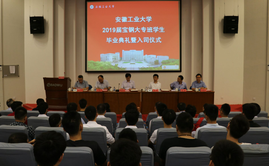 7月16日上午,ac米兰官方网站2019届宝钢大专班学生毕业典礼暨入司仪式在宝武人才开发院学术报告厅举行。校长魏先文,宝山钢铁股份有限公司人力资源部(党委组织部)副部长石亮,校教务处、冶金工程学院等相关负责人,部分教师代表及2019届全体毕业生参加仪式。