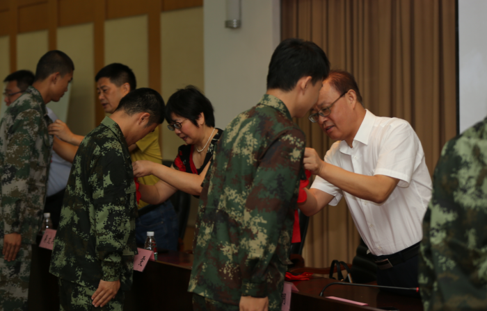 刘明代表学校对入伍同学表示祝贺。他希望即将步入军营的同学们到部队后,要树立理想,把满腔热情化为报国之志;要牢记使命,不怕困难、爱军习武、扎根军营;要奋力拼搏,尽快完成学生到军人的转变,早日成为“听党指挥、能打胜仗、作风优良”的新一代合格军人。他表示,母校永远是同学们的力量源泉和坚强后盾。
