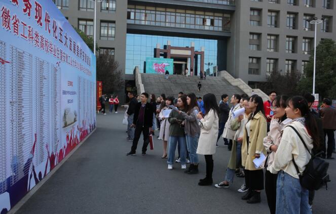 经校学工部就业指导中心的精心谋划,此次就业市场呈现了三个特点:一是参会单位规模大、层次高,本次就业市场涉及制造、建筑、信息传输、软件技术服务、电气自动化、交通运输和仓储、商业服务、房地产、食品饮料等众多领域。参会单位包括中国建筑集团、中国铁路工程集团、中国能源建设集团、铜陵有色、太平洋建设、江西铜业、安徽海螺、苏宁易购、青山控股等世界500强及其分子公司以及中国冶金科工、中国中煤能源、淮北矿业、安徽江淮、新奥能源、山东钢铁等中国500强及其分子公司,同时还有长期校企合作单位,中天钢铁集团、江苏常宝钢管、东铭实业集团、皖北煤电、上海钢之家、卧龙电气驱动集团、牧原食品股份等国内上市公司和知名企业。二是周密谋划,提前对接,供需岗位匹配度更加精准。充分利用“校企合作、产教融合”平台,积极拓展就业渠道和市场,结合学校毕业生专业及就业意愿的分析,认真筛选招聘企业,提前发布需求信息,提升现场双向选择的精准度。三是简化流程,高质量高标准做好服务。所有参会单位都是通过企事业单位校招服务平台报名,报到手续通过平台扫码即可,同时配备专门校园招聘大使,对单位实行一对一服务,提前做好展位、引导、面试预约等细节安排,为企业创造良好的招聘环境。