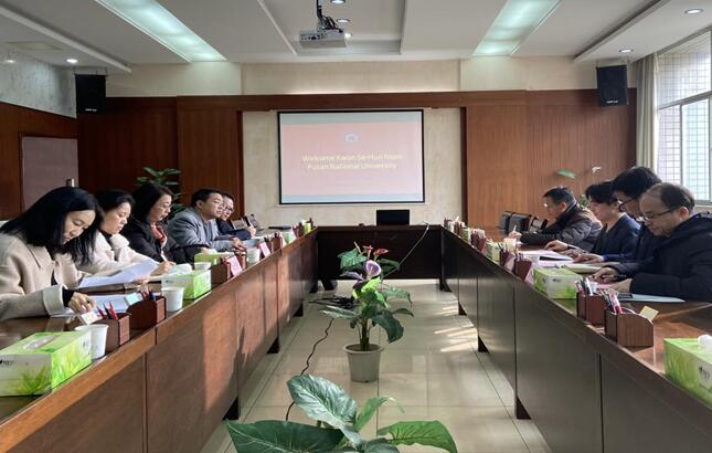 12月16日,韩国国立釜山大学材料科学与工程学院院长Kwon Se-Hun教授来校访问交流。副校长顾明言会见了客人,国际合作与交流处、人事处、研究生院、材料与工程学院等单位负责人参加了座谈交流。座谈会由国际合作与交流处处长胡善贵主持。