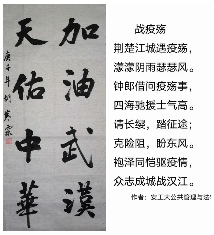 连日来,校团委面向全体学生开展“疫情防控我来讲”活动,依托网络信息平台,通过真人真事分享、宣传视频、制作海报、原创诗歌等方式引导团员青年主动参与疫情防控工作,得到了广大学子的积极响应。截至目前,已累计收到防疫日记、加油视频、战“疫”海报、抗“疫”主题的书法、诗歌作品等各类原创作品70余件,体现了ac米兰青年学子在疫情面前的使命感与青春担当。