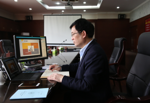 4月17日下午,校长魏先文在学术会议中心三楼第一会议室,与本科生一道先后收听收看了马克思主义学院王桂兰老师的《思想道德修养与法律基础》和冶金工程学院万勇老师的《钢铁冶金概论[金]》线上授课。