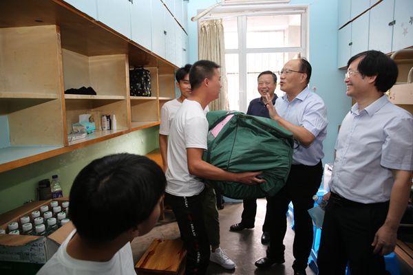 9月20日上午,校党委书记刘新跃、校长魏先文、校党委副书记祖明、副校长顾明言、副校长刘明、校纪委书记潘淑琴深入两校区迎新现场,检查指导迎新工作,看望2020级新生,慰问迎新一线的工作人员和志愿者。刘新跃一行按新生报到流程,了解新生测温、核验健康码、录取通知书核验、领取钥匙和校园卡、绿色通道办理情况,要求工作人员和志愿者要按照疫情常态化防控要求,强化工作责任,简化工作流程,把为新生做好服务放在第一位;要重点关注受疫情、洪灾影响及建档立卡贫困家庭学生情况,为同学们提供全面周到细致的服务,确保每一个学生顺利入学。刘新跃、魏先文等校领导还深入到建工学院、数理学院等新生宿舍走访慰问,详细询问新生家庭、学习、生活等情况,勉励同学们要弘扬伟大抗疫精神,自立自强,志存高远,不负青春、不负韶华、不负新时代;要明确奋斗目标,培育爱国荣校的情怀,珍惜青春年华,始终铭记“精工博学,厚德敏行”校训精神,在学习实践中成长成才。
