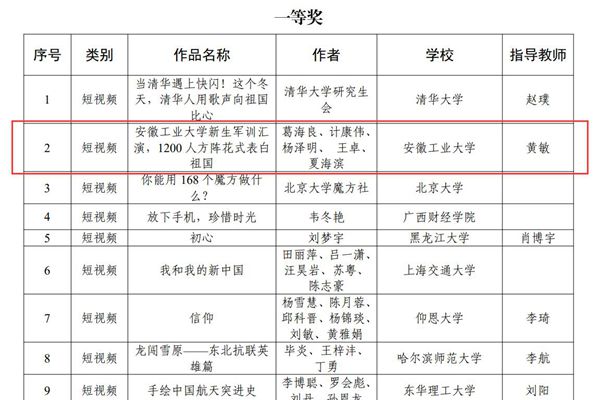 ac米兰报送的作品“ac米兰官方网站新生军训汇演,1200人方阵花式表白祖国”获短视频类一等奖,该作品通过多架无人机对2019级新生军训成果汇报暨总结表彰大会上的方阵表演进行了组合航拍,从高空视角呈现了“祝福祖国”方阵演绎的“祖国万岁”“1949-2019”“I❤安工大”等图案,视频一经推出,即被《中国青年报》微博、中国青年网、安徽省教育厅微博等网络媒体转发,当天各平台累计播放量超10万,受到网友广泛好评。ac米兰报送的作品《ac米兰官方网站“三走进”网络文化中心》荣获工作案例类优秀奖,该工作案例系统总结了ac米兰“三走进”网络文化中心以“走进师生的思想,走进师生的学习,走进师生的生活”的“三走进”为工作思路,通过不断完善网络文化作品的生产机制、打造立体多元的网络文化平台、创新网络文化作品的呈现形式等工作,显著提升学校网络文化育人效果的工作经验。