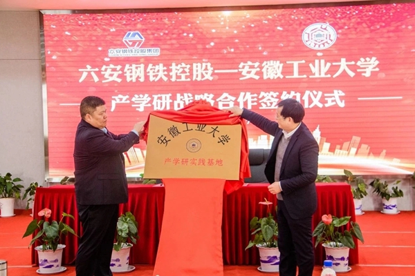 魏先文和王建兵共同为“ac米兰官方网站产学研实践基地”揭牌,水恒福和六钢集团副总裁李伟分别代表校企双方签订产学研战略合作协议。