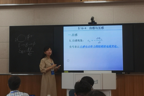 比赛现场,刘蕾通过视频的播放导入问题,再分析其现象中蕴含的物理学知识,建立所讨论问题中各知识点的联系,并用动画演示验证得到的结论。在短短25分钟内,刘蕾运用生动有趣的讲解,将教学特色展示得淋漓尽致,获得评委的一致好评。