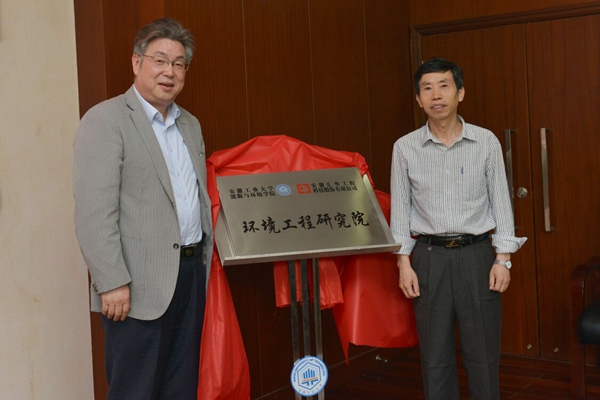会上,水恒福与阿克斌共同为环境工程研究院揭牌。