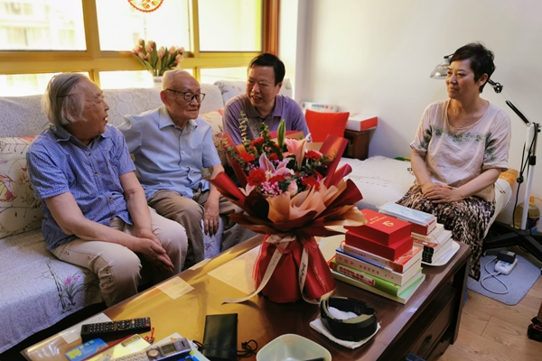 在庆祝中国共产党成立100周年之际,6月24日、25日,校党委副书记祖明、工会主席姚敏与相关部门负责人分别走访慰问了钱湛芬、荣伯庸、糜克勤、王建军等退休省部级劳动模范,为每位劳动模范送上了慰问金和鲜花,把学校党政及工会组织的温暖和关怀送到他们身边。