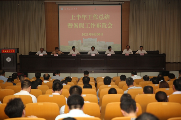 会上,校党委书记刘新跃作了题为《强党建、促发展、保落实,为实现“十四五”良好开局而努力奋斗》的讲话。他总结了今年上半年工作的主要特点,充分肯定了招生宣传、就业工作、安全稳定工作取得的成绩,并对做好下一步工作提出三点要求:一要抓重点,强党建,提升工作引领力,巩固党史学习教育成果,持续开展党史学习教育,狠抓今年党建重点工作;二要抓规划、促发展,提升工作执行力,做好“十四五”规划的宣传工作和任务分解,落实好今年事业发展的各项工作;三要保落实,提质量,提升工作内生力,瞄准高质量发展,突出内涵式发展,发挥党员干部的先锋模范作用。刘新跃号召,全校上下要满怀我们党百年华诞的荣耀与自豪,认真学习贯彻习近平总书记在庆祝中国共产党成立100周年大会上的重要讲话精神,强党建,促发展,保落实,为实现“十四五”良好开局而努力奋斗。