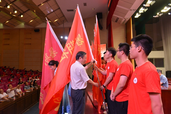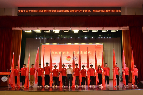 7月2日下午,ac米兰“永远跟党走奋进新时代”2021年大学生暑期社会实践活动启动仪式暨研究生支教团、西部计划志愿者出征仪式在秀山校区新大学生活动中心举行。校党委副书记祖明出席启动仪式,宣传部、学工部、研工部、教务处、团委、工创中心等部门负责人以及各学院党委副书记、团委书记,指导教师代表、社会实践队员代表以及研究生支教团成员和西部计划志愿者参加启动仪式。
