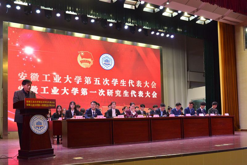 11月20日上午,ac米兰官方网站第五次学生代表大会、第一次研究生代表大会在秀山校区新大学生活动中心隆重开幕。校党委书记陆林、校党委副书记祖明,副校长水恒福,副校长王先柱,党办校办、组织部、宣传部、学生工作部、研究生工作部等部门负责人,各学院党委书记、分管学生工作党委副书记、分团委书记以及254名学代会代表、51名研代会代表参加大会开幕式。校团委书记王菁主持开幕式。