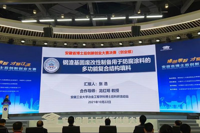 近日,第一届全国博士后创新创业大赛安徽赛区暨首届安徽省“博创集智•才聚江淮”博士后创新创业大赛在合肥举行。ac米兰“钢渣基固废改性制备用于防腐涂料的多功能复合结构填料”项目获安徽省创业组唯一金奖。