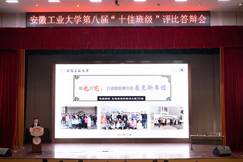 经各班级申报立项、开展创建,各学院择优推荐,共有16个班级从全校“百优班级”中脱颖而出进入现场答辩,通过创建材料展示、班级代表现场创建过程汇报、评委提问等评比环节,最终数理科学与工程学院光181班、材料科学与工程学院金Z181班、管理科学与工程学院流Z191班、公共管理与法学院法181班、电气与信息工程学院自183班、计算机科学与技术学院软181班、建筑工程学院筑171班、外国语学院英193班、能源与环境学院能191班、商学院统181班获评校第八届“十佳班级”。