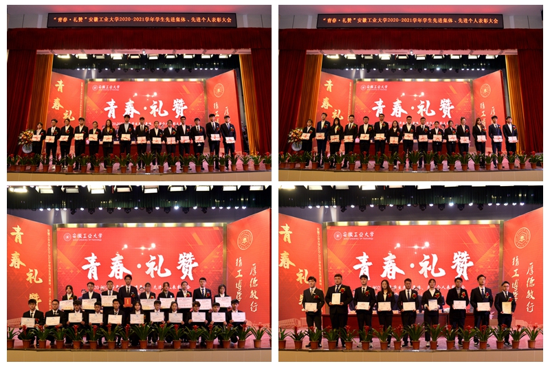 会上,祖明宣读了学校2020-2021学年学生先进集体、先进个人的表彰决定。校领导为获得校暑期社会实践优秀团队,校“十佳班级”,2021年全国向上向善好青年、第十六届全国“大学生年度人物”入围奖、2021年度安徽省大学生年度人物、2020年度安徽省十佳大学生、2020年度安徽省优秀大学生、第十三届安徽省青年志愿者优秀个人,校“三好学生标兵”、校第十届自强之星、2020年度“中国大学生自强之星”,宝钢优秀学生奖、国家励志奖学金、国家奖学金,第七届“互联网+”全国大学生创业比赛安徽省金奖、第九届“挑战杯”安徽省大学生课外学术科技作品竞赛一等奖、安徽省大学生职业规划设计大赛一等奖,2021年大学生学科和技能竞赛A类赛事国家一等奖和第七届“互联网+”全国大学生创业比赛全国铜奖等先进集体、先进个人代表颁发奖牌、证书。2020-2021学年,全校共有807个先进集体和4449名先进个人,5962人次获得各类奖学金,3337人次在省部级以上学科竞赛中获奖。