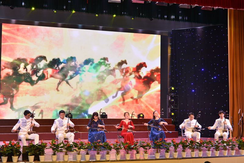 音乐会分为“峥嵘岁月”、“日月新天”、“春天故事”、“复兴之路”四个篇章,以经典乐曲《金蛇狂舞》澎湃开场,热情洋溢、昂扬高亢的旋律拉开了峥嵘岁月的金色过往。民乐合奏《我的祖国》、男生小合唱《弹起我心爱的土琵琶》、男生独唱《松花江上》等慷慨激昂的曲调将先辈顽强拼搏的坚强意志展现的淋漓尽致。西洋乐合奏《红旗颂》、女生小合唱《唱支山歌给党听》、古筝合奏《瑶族舞曲》以及情景剧表演唱《寸心》再现了中国共产党人继往开来、与时俱进的美好奋斗史,表达了人民对党的坚定拥护与热爱。歌曲《把一切献给党》诉说了党员无限忠诚的向党心声。小提琴齐奏《伟大的北京》奏出北京的光辉历史篇章,二胡齐奏《战马奔腾》尽诉边疆战士的赤胆衷肠,生动讲述了改革开放的“春天故事”。管乐重奏《第二圆舞曲》、女生独唱《白鸟》、《七月的草原》以及合唱《灯火里的中国》、《少年》、《领航》共同唱出了闪耀中国、辉煌时代。