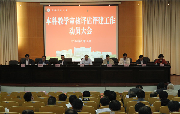 5月16日下午,学校召开本科教学审核评估评建工作动员大会。全体在校校领导、督导员,全体中层干部,院(部)系(室)主任、本科各专业负责人、教学秘书(干事),教务处、教师能力发展中心科级干部,校级教学督导专家,近300人参加了会议。会议由副校长顾明言主持。