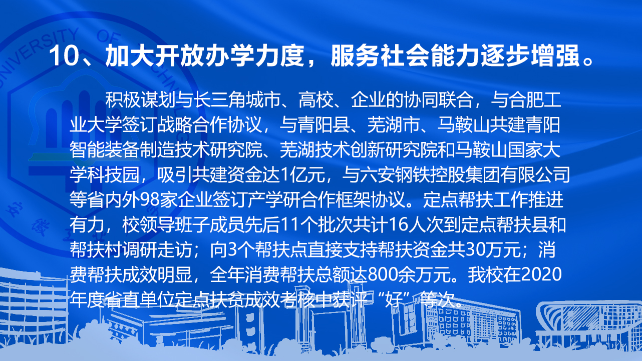 ac米兰2021年“十件大事”评选结果于近日揭晓。前期,校工会、党委宣传部向全校征集2021年“十件大事”候选题并开展投票评选工作,共有2083名教职工参与投票。经学校党委常委会研究,最终确定2021年“十件大事”。
