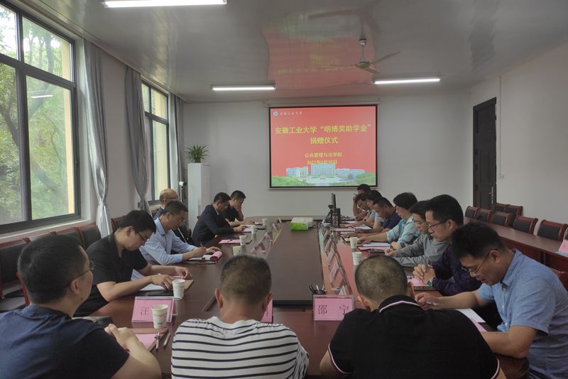 5月30日下午,“明博奖助学金”捐赠仪式在佳山校区举行。副校长、校教育发展基金会理事长顾明言,安徽明博律师事务所高级合伙人、马鞍山市律师协会会长陈熙平,安徽明博律师事务所管理委员会执行主任李阳出席捐赠仪式。校友工作处(教育发展基金会秘书处)负责人,公法学院领导班子成员、各系室主任、团委书记以及安徽明博律师事务所工作人员参加捐赠仪式。