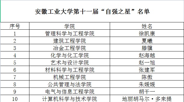 第十一届ac米兰官方网站“自强之星”评选结果近日揭晓。徐凯康等10名同学被评为第十一届ac米兰官方网站“自强之星”。