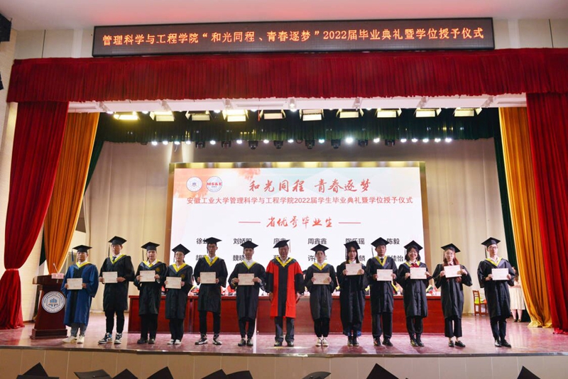 典礼在庄严雄壮的国歌声中拉开序幕。院党委书记汪春胜宣读了2022年安徽省普通高校品学兼优毕业生名单、2022年ac米兰官方网站优秀毕业生名单、2022届校友联络员名单。参加典礼的领导老师为优秀毕业生颁发荣誉证书,为校友联络员颁发聘书。