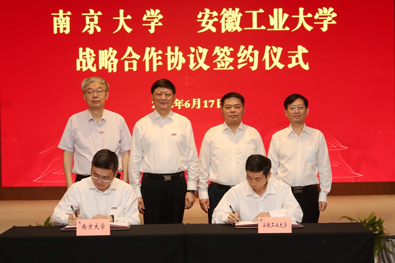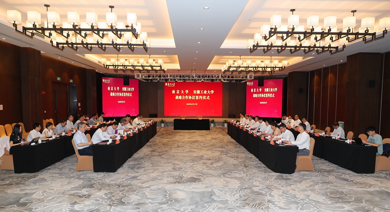 6月17日上午,校党委书记陆林、校长魏先文带领全体在校校领导、党委常委以及党办校办,党委组织部,党委宣传(统战)部,研究生院、学科办,教师工作部、人事处,发展规划处,科研处,教务处等部门负责人到南京大学调研并签订战略合作协议。南京大学党委书记胡金波,中国科学院院士、校长吕建,党委常务副书记杨忠,中国科学院院士、党委常委、常务副校长谈哲敏,副校长陆延青以及党委办公室、统战部,组织部,研究生工作部、研究生院,宣传部,校长办公室、法制办公室,纪委办公室,教师工作部、人力资源处,创新创业与成果转化工作办公室、国内合作办公室,科学技术处,学科建设与发展规划办公室,本科生院综合办公室(数据中心)等相关部门负责人热情接待了陆林、魏先文一行。谈哲敏主持签约仪式。