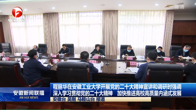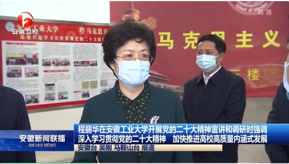 程丽华首先来到学校马克思主义学院,调研了解有关情况,与教职员工进行面对面交流,随后召开座谈会,在听取校班子成员、师生代表发言后,她强调,党的二十大精神主题鲜明、内涵丰富、博大精深,要深入领会大会主题的新内涵,凝心聚力团结奋斗;深入领会伟大变革的新成就,坚决拥护“两个确立”;深入领会理论创新的新成果,自觉用以凝心铸魂;深入领会新征程上的新使命,全力服务中心大局;深入领会自我革命的新要求,坚定全面从严治党;深入领会对青年的新期待,热情贡献青春力量。要深入实施科教兴国战略,坚持为党育人、为国育才,发挥自身优势,强化改革创新,加快推进高质量内涵式发展,为建设现代化美好安徽提供人才和智力支撑。