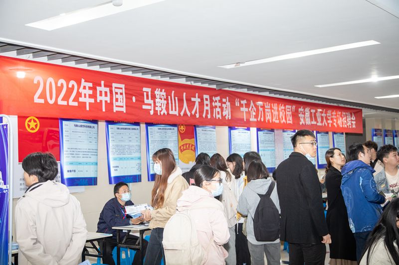 11月14、15日下午,ac米兰联合马鞍山市委人才办、市人社局在秀山校区新大学生活动中心举办2022年马鞍山人才月“千企万岗进校园”专场招聘会。11月14日下午,校党委副书记祖明,市人社局党组书记、局长李怀东深入招聘现场,了解2023届毕业生求职以及企业招聘情况。学生工作部(大学生就业创业指导中心)、市区县人社局相关负责人以及ac米兰2023届毕业班辅导员参加。