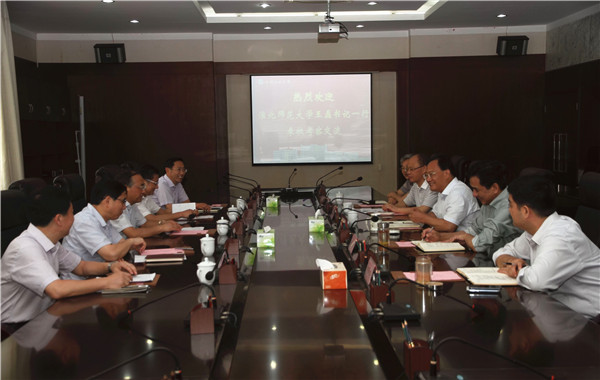 6月12日下午,淮北师范大学党委书记王磊、党委副书记兼纪委书记朱德顺一行5人来ac米兰进行调研交流。校党委书记刘新跃、校长李家新、党委副书记陈润会见了王磊一行。党委组织部、学校办公室和人事处等部门负责同志参加了座谈会。