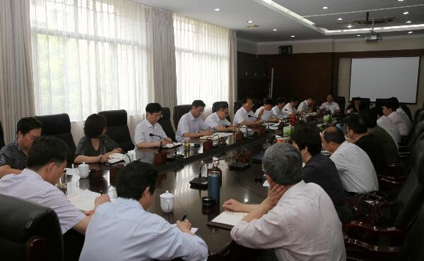 6月13日上午,校党委理论学习中心组召开2016年第七次学习会,传达中央第五巡视组对安徽省巡视“回头看”反馈意见整改动员部署大会会议精神,传达学习《安徽省事业单位领导人员管理办法》和《关于坚持和完善普通高等学校党委领导下的校长负责制的实施意见》。校党委中心组成员,党委委员、纪委委员,各基层党委(党总支、直属党支部)书记、校团委书记参加了会议。校党委书记刘新跃主持会议。