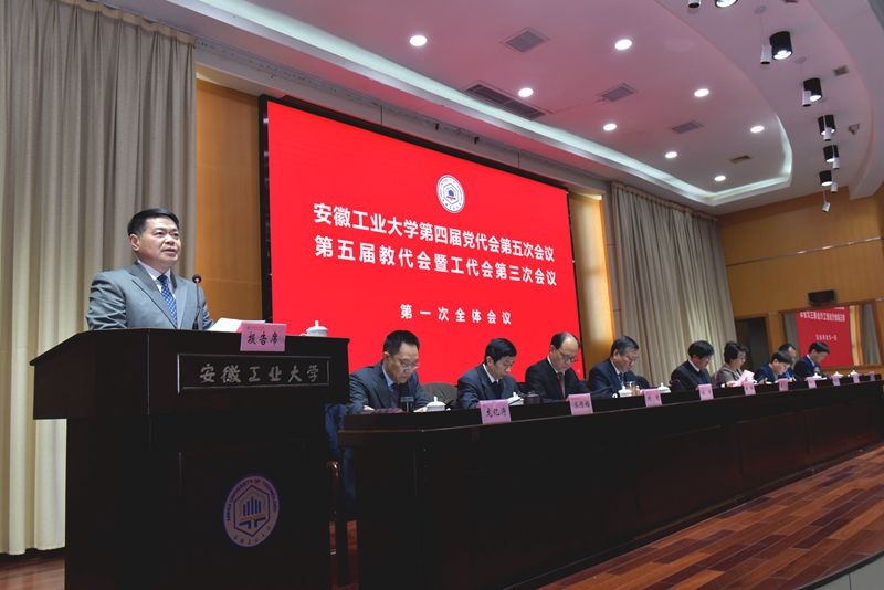 上午8:30召开第四届党代会第五次会议、第五届教代会暨工代会第三次会议第一次全体会议,会议由校党委副书记祖明主持。陆林作党委工作报告,他指出,会议的主要任务是以习近平新时代中国特色社会主义思想为指导,深入学习宣传贯彻党的二十大精神,衷心拥护“两个确立”,忠诚践行“两个维护”,坚决贯彻落实中央决策部署和省委工作要求,回顾2022年校党委主要工作,部署2023年重点任务,动员全校党员干部和师生员工,改革攻坚再深化,守正创新提效能,团结奋斗强作风,统筹推进学校党建和事业发展各项工作,朝着国内知名特色高水平大学的目标阔步迈进,奋力推进学校内涵式高质量发展新实践取得新实效。