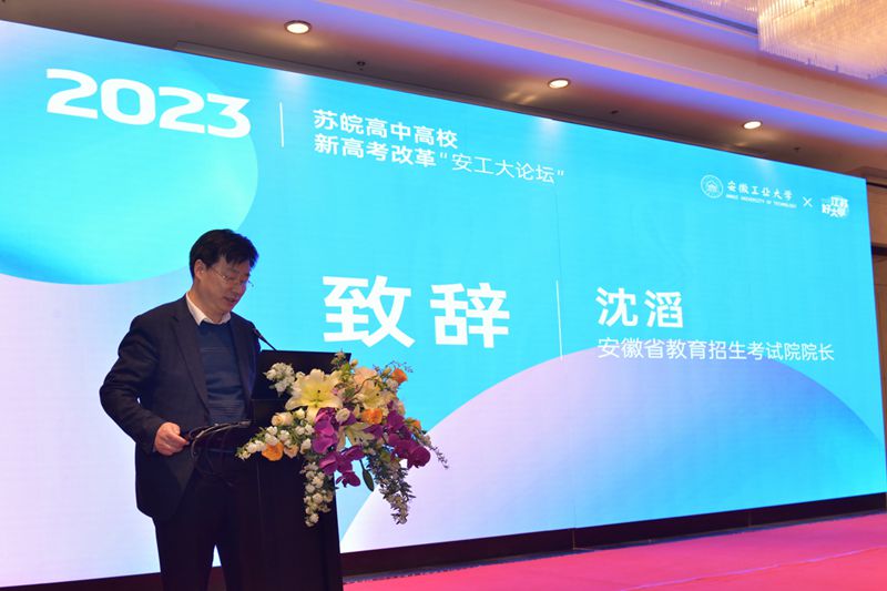 沈滔代表安徽省教育招生考试院对论坛的召开表示祝贺,他指出,安徽和江苏地缘相近、人文相亲,江苏有“好”大学,安徽有“好”学生,江淮有“好”学校。马鞍山因诗而兴名,因钢而建市,既浪漫又直爽,既低调又务实,ac米兰官方网站各项办学指标稳步向前,全省排名位列前茅,一马当先,引领潮流。在座的几十所高中学校均是江淮大地高中教育的杰出代表,其中不乏百年名校,有悠久的传承,是全国高校必争之所在。希望通过此次研讨交流,能够充分学习借鉴江苏的好经验好做法,助力安徽高考综合改革平稳落地。