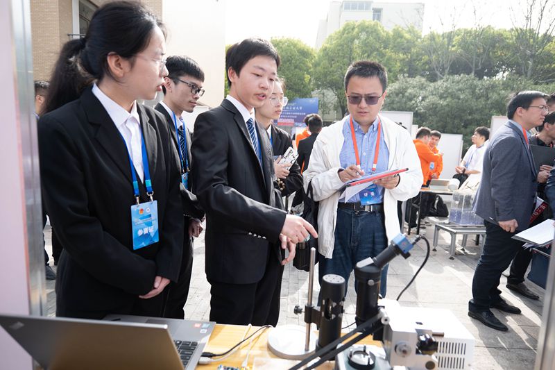 校级终审决赛采用项目展示和陈述答辩相结合的方式进行。比赛过程中,各参赛团队利用展板展示、实物演示、现场实验,对项目的研究背景、设计思路、构造原理、创新优势等方面进行陈述,专家评委从材料规范性、选题时代性、作品创新性、调研数据支撑、应用成熟度等方面对项目进行考察。陈述答辩环节参赛队员们情绪饱满、语言流畅、思维清晰,展现出良好的综合素养。评审专家围绕项目科学性、先进性和实用性等方面进行了重点提问,并结合项目实际给出了针对性的指导。最终评选出一等奖32项和二等奖55项,同时确定了15件入围省赛作品。
