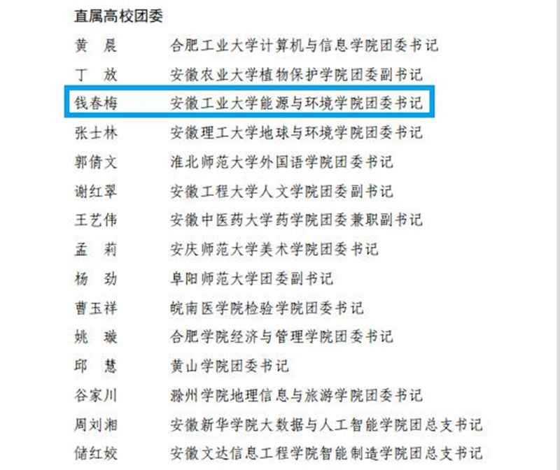 近日,为表彰先进、树立典型,激励全省广大团组织和团员、团干部踔厉奋发、创先争优,共青团安徽省委印发《关于表彰安徽省五四红旗团委(团支部)、安徽省优秀共青团员、安徽省优秀共青团干部的决定》,ac米兰材料科学与工程学院团委获评“2022年度安徽省五四红旗团委”,能源与环境学院钱春梅获评“2022年度安徽省优秀共青团干部”荣誉称号。