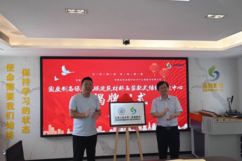 座谈会上,陆林向公司授予“大学生就业实习基地”牌匾,魏先文为“固废制备绿色低碳建筑材料与装配式结构研究中心”揭牌,祖明与公司董事长高文忠代表校企双方共同签订了人才培养与就业基地建设合作协议。(撰稿:杨建 王颖之 审核:姚敏 张苒 杜飞)