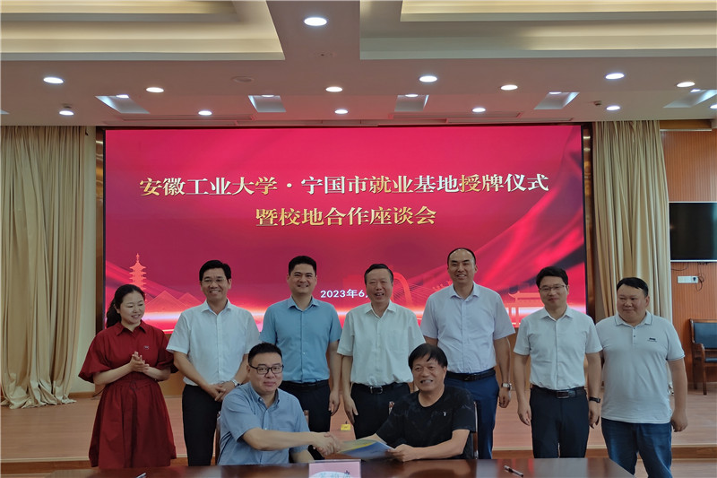学校与宁国市政府举行了校地合作座谈会暨就业基地授牌仪式,仪式由宁国市人社局局长钟奕辉主持。屠春节介绍了宁国市近年来的建设发展、人才需求、政策支持等情况。祖明介绍了学校办学历史、人才培养、教学科研、政产学研合作、毕业生就业创业等方面情况,以及在人才工作、学科建设、科技创新、思想政治工作等方面取得的突破性进展。祖明指出,学校的发展离不开各级政府和广大企业的关心支持,地方经济发展和企业的壮大需要高校培养更多的高素质人才。宁国市有着较强的工业基础,特色工业产业优势明显,希望进一步加强校地、校企间的政产学研合作,建立良好的合作关系,形成良性循环,在已有合作的基础上进一步发挥优势,拓宽合作领域,开展更加广泛、深入、务实合作,实现校地、校企协同发展。
