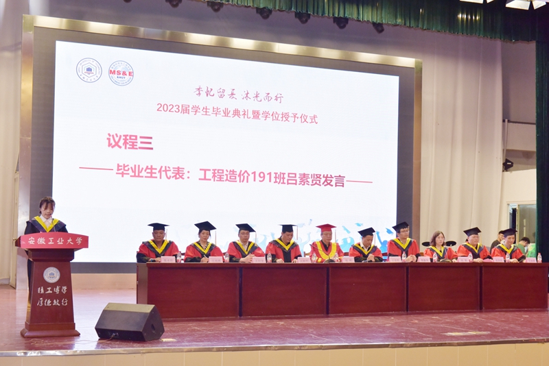 典礼在庄严的国歌声中拉开序幕。管理科学与工程学院院长汪和平宣读了学位授予名单,院党委书记汪春胜宣读了安徽省优秀毕业生、校优秀毕业生的表彰决定以及校友联络员名单。在主席台就座的领导老师为安徽省优秀毕业生、校优秀毕业生、校友联络员颁发了聘书。