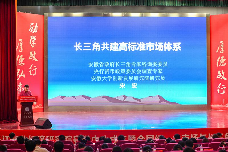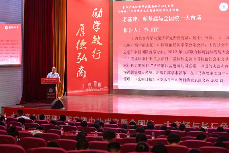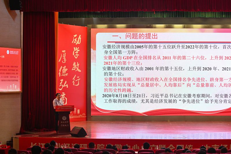 主题论坛由商学院院长章铁生主持。刘志彪教授、曾凡银教授、安徽大学创新发展研究院副院长宋宏教授、上海社会科学院李正图教授、商学院党委书记洪功翔教授分别作了题为《政府咨询研究报告写作分析:以建设全国统一大市场为例》、《功能区优势互补促进长三角共同富裕》、《长三角共建高标准市场体系》、《老基建、新基建与全国统一大市场》、《为什么是安徽率先跻身全国第一方阵》的主旨报告。(撰稿:武优勐 张苒 审核:洪功翔 杜飞)