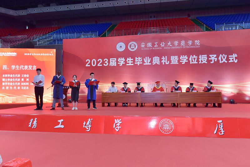 教师代表吴义东表达了美好祝愿,希望同学们能不忘来时的路和回家的路,走好前方的路,绘就人生的精彩画卷。家长代表裴琼向学校、学院及全体教职员工表达了由衷感谢和美好祝福。毕业生代表黄河、王诗佳、HUNGWE IAN TINASHE分享了在校学习、工作和生活的收获与成长,表达了对学校、老师的感激与眷恋之情;在校生代表马宏杰向学长学姐们送上离别的祝福。