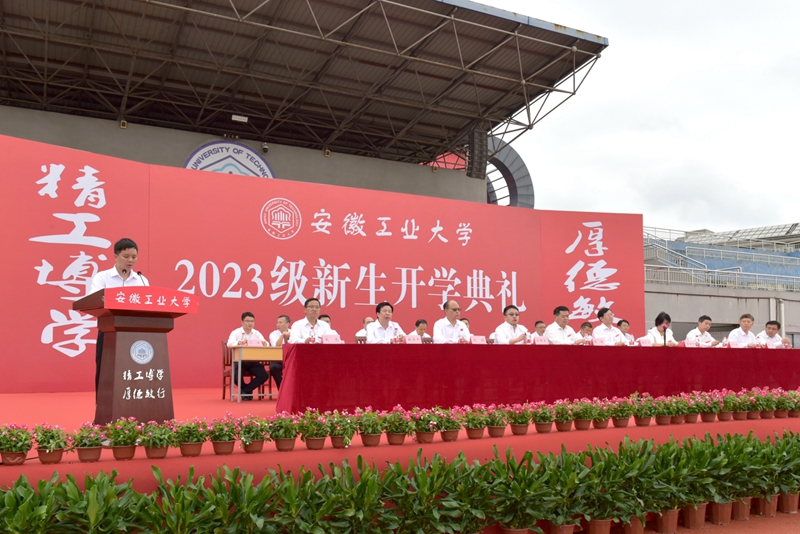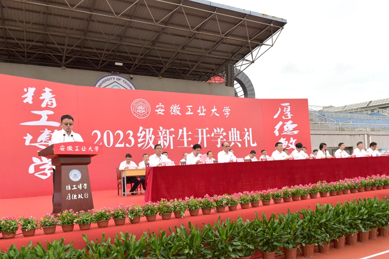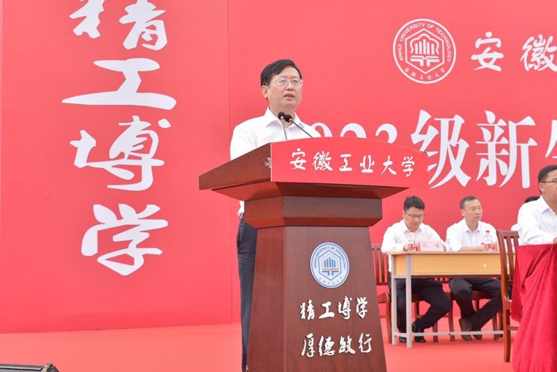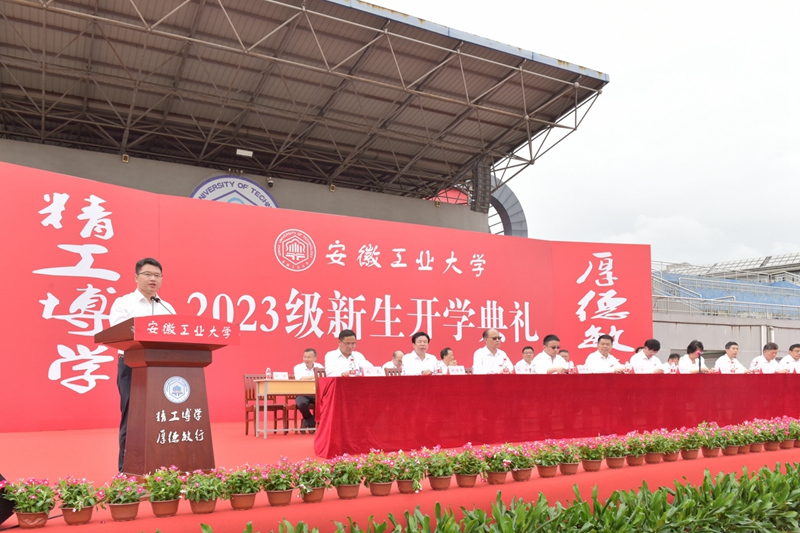 典礼在雄壮的国歌声中开始。校党委副书记、校长魏先文在题为《明大学之道,担时代之责,做强国新人》的讲话中,向全体新同学的到来表示欢迎和祝贺,向默默支持、辛勤培育同学们的家人和老师们表示感谢和敬意。他指出,大学有道,其发展有规、内涵有魂,有着共同的特质,需要同学们悟懂大学之道,找准成长之道,开启人生之道。大学之道在担当兴国之使命。ac米兰官方网站是一所守初心、担使命的大学;希望同学们坚定理想信念,担当兴国使命,把个人的成长融入集体,把个人的成才抱负融入国家发展、民族复兴之中,把个人的价值融入社会进步的进程之中,胸怀家国,肩担责任,科学理性规划大学时光,立志成人成才,并付诸积极行动和艰苦努力,让自己的青春年华绽放绚丽光彩,努力成为有理想、有担当、有情怀的人。大学之道在创造知识之责任。ac米兰官方网站是一所接地气、善创新的大学;希望同学们学会独立思考、学会管理自己、学会学习、学会创新,主动、积极、开放、交互式地融入大学的知识传承、创造,在知识与生命热情之间架起桥梁,展开充满想象力的探索,着眼前沿,锲而不舍,成为知识宽厚、能力强大、思维科学、全面发展的人。大学之道在坚守大学之精神。ac米兰官方网站是一所有精神、有灵魂的大学;希望同学们感悟、体验、践行、传承我们的校园文化和校训精神,努力做到“凡我在处,便是安工大”,始终追求卓越,铸就“精工”;保持求知若渴,追求“博学”;恪守责任担当,践行“厚德”;矢志艰苦奋斗,“敏行”不怠,成为有精神、有特质、有风骨的人。