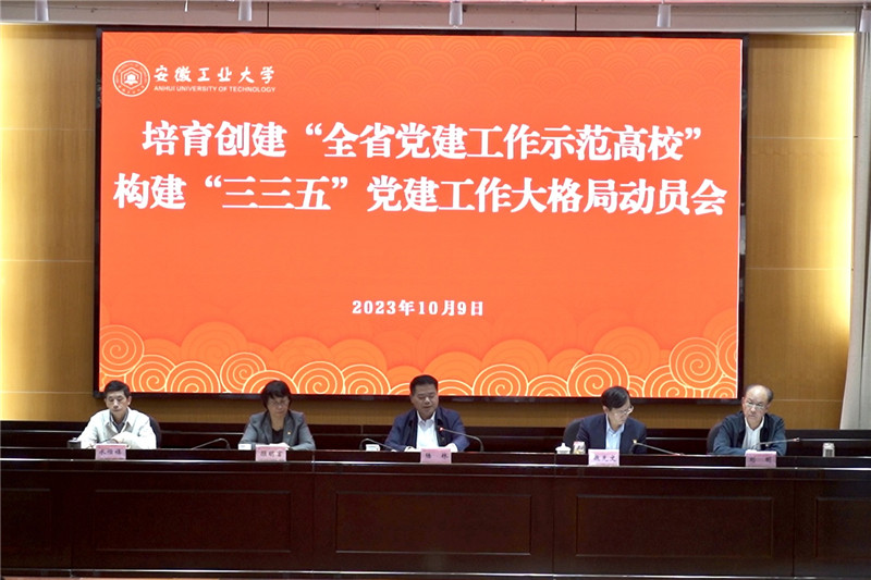 校党委副书记、校长魏先文解读了《中共ac米兰官方网站委员会关于培育创建“全省党建工作示范高校”构建“三三五”党建工作大格局的实施方案》,从指导思想和总体思路,培育创建目标,培育创建内容、责任分工和完成时限,阶段性工作目标、计划,培育创建工作保障等五个方面,对实施方案进行了讲解,介绍了“154”高质量党建工作体系、“六位一体”党建责任体系、“1+2+2”党建工作质量标准体系等“三大体系”;二级党组织“党员之家”建设,“党务工作电子平台”系统,“安工大党建e家”信息管理系统等“三大平台”以及大力实施党建“五提工程”的具体内容。他要求大家对照实施方案,狠抓工作落实。