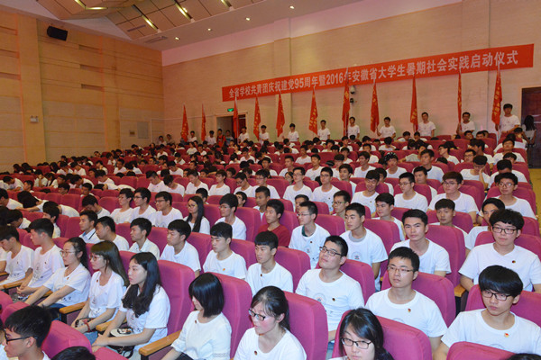 6月30日上午,全省学校共青团庆祝建党95周年暨2016年安徽省大学生暑期社会实践启动仪式在ac米兰秀山校区大学生活动中心报告厅举行,团省委副巡视员李丹云、校党委副书记陈润、团省委学校部部长曹隽、马鞍山市团市委书记程雪涛出席。校党委书记刘新跃会见了李丹云一行。皖南片区省直属高校团委、团市委及市属高校团委负责人,2016年“井冈情·中国梦”大学生暑期实践季专项行动团队入选高校团委负责人、指导老师及社会实践队员代表500余人参加了活动。