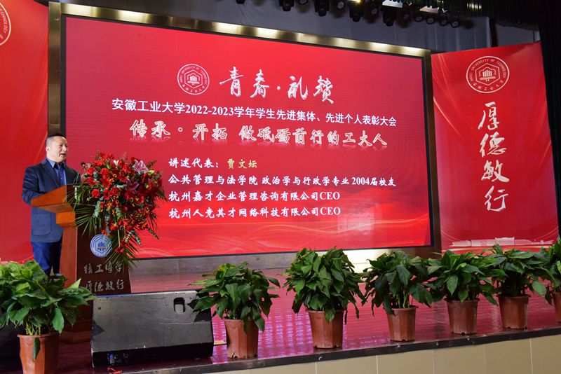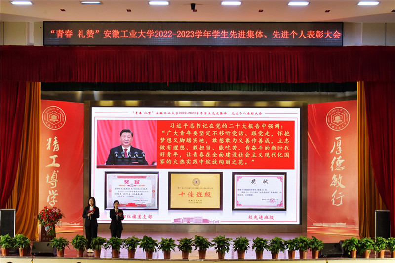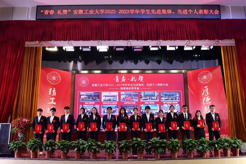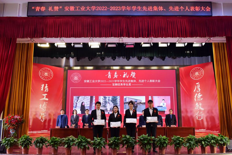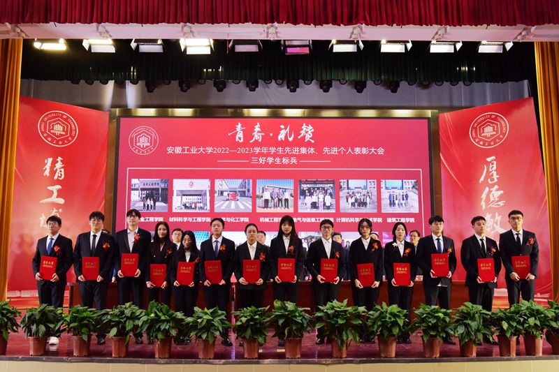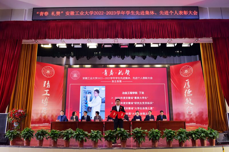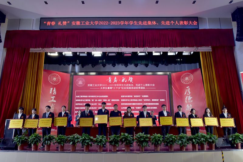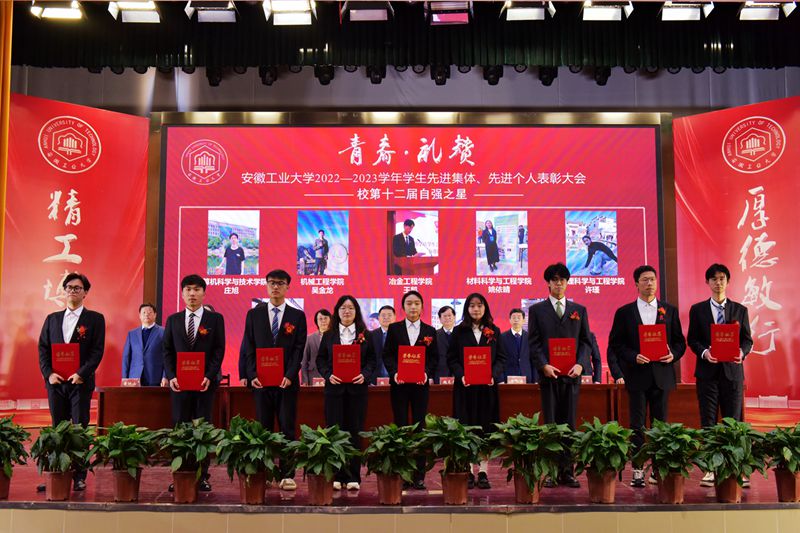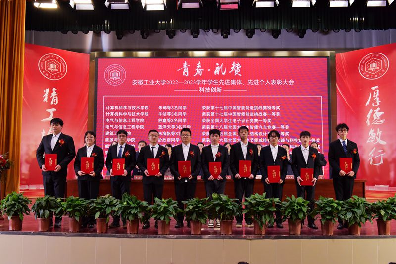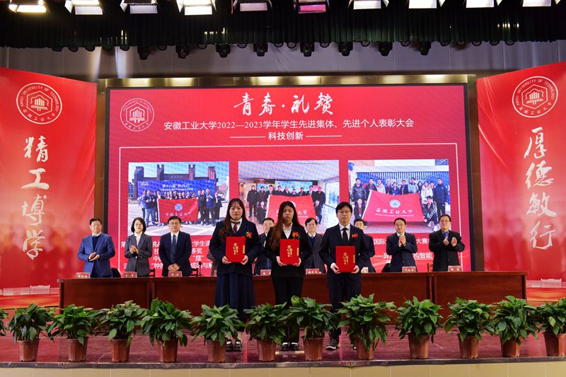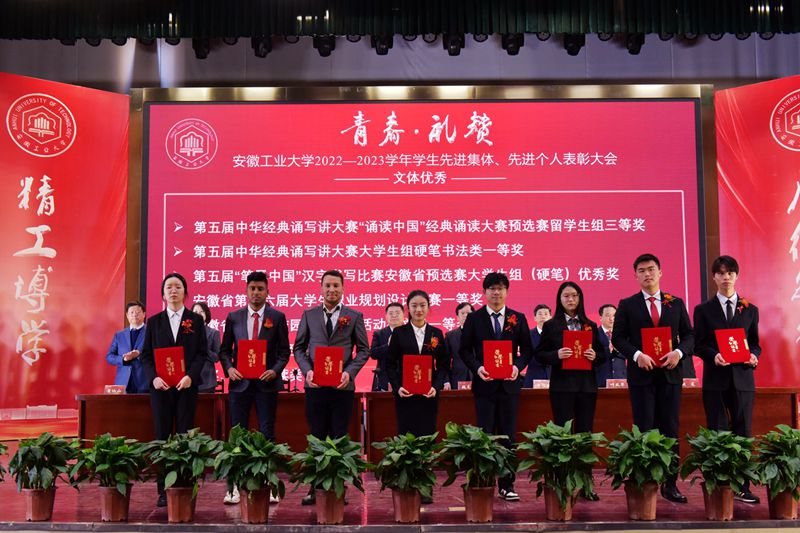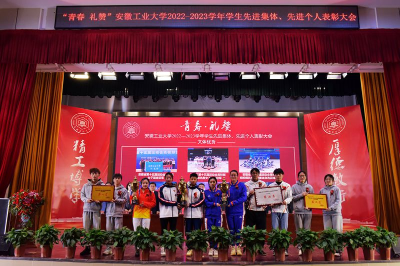 会上,校党委常委、副校长顾明言宣读了2022-2023学年学生先进集体、先进个人的表彰决定。校领导为校暑期社会实践优秀团队,校“十佳班级”,校“三好学生标兵”,2022年度安徽省十佳大学生、2022年度安徽省优秀大学生,宝钢优秀学生奖、国家励志奖学金、国家奖学金,第五届中华经典诵写讲大赛“诵读中国”预选赛留学生组三等奖、第五届中华经典诵写讲大赛全国一等奖、安徽省第十六届大学生职业规划设计大赛一等奖、安徽省第五届校园读书创作活动征文类一等奖、安徽省第十五届运动会篮球比赛女子丙组冠军、第九届中国大学生英式七人制橄榄球锦标赛第七名、安徽省第二届大学生排球精英赛男子甲组第一名,校第十届自强之星、2022年度安徽省“研究生党员标兵”、2022年度“中国大学生自强之星”、2023年度安徽省“最美大学生”,2023年大学生学科和技能竞赛A类赛事国家一等奖、2023年中国国际大学生创新大赛金奖、第十八届“挑战杯”全国大学生课外学术科技作品竞赛一等奖等先进集体、先进个人代表颁发奖牌、证书。2022-2023学年,全校共有879个先进集体受到表彰,3775人次获各类奖学金,4703名先进个人获各类荣誉称号,983人次在省部级以上学科竞赛中获奖。