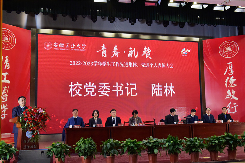 12月22日下午,ac米兰2022-2023学年“青春·礼赞”学生先进集体、先进个人表彰大会在秀山校区大学生活动中心隆重举行。校领导陆林、魏先文、顾明言、水恒福、郑啸出席大会,校党委常委、相关职能部门负责人,各学院党委书记、院长、党委副书记,辅导员、教师代表,校友、宿舍管理员、家长代表,受表彰的先进集体、先进个人以及各学院学生代表等共500余人参加大会。表彰大会由校党委副书记、校长魏先文主持。