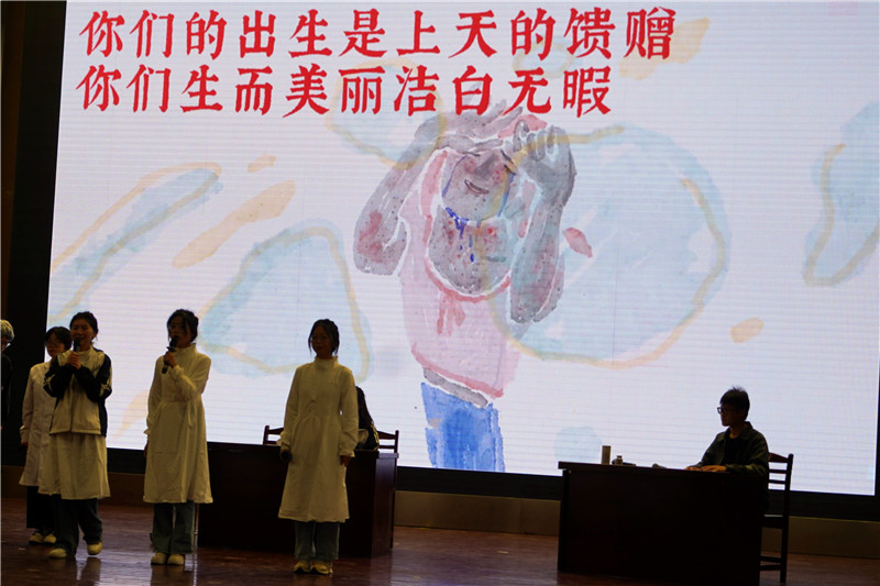 自11月份开始,各学院组织开展了“每班一剧、全班参与”初赛,评选出代表剧目参加全校半决赛。经过半决赛选拔,共有7个剧目进入决赛舞台。管理科学与工程学院《放手是为了更好的飞翔》演绎了撤去可能束缚的手,孩子可能飞得更高、更远的故事;建筑工程学院《被大海淹死的人》通过一段充满希望和勇气的旅程,探究人生的意义;商学院《淤泥里长出来的常青树》探讨了与原生家庭之间的爱恨情仇;电气与信息工程学院《溯》在回溯岁月的的漫漫长河中,让错过的阳光再次撒落;研究生会《向左,向右,向前》揭示了人生路上不要苛求完美,没有完美的人,亦没有完美的事;外国语学院《口罩病》讨论了躲藏在口罩之下,是否真的在保护自己;材料科学与工程学院《微微》探索了什么是美,如何接纳自我。剧目取材于同学们身边发生的事,呈现了当代大学生在自我认识、环境适应、生涯发展、时间管理、亲密关系等方面上遇到的问题,以及面对这些困境时内心的冲突与抉择。