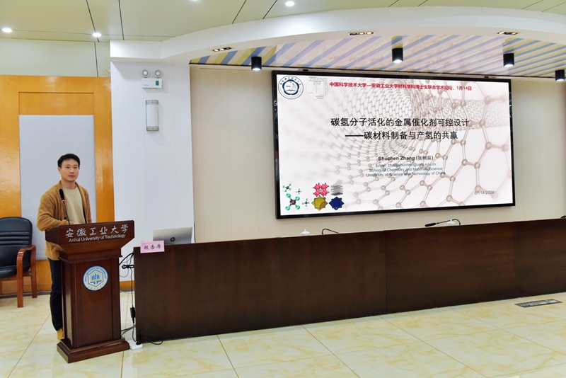 中国科学技术大学陈春华教授、杜平武教授、王成威教授、张树辰教授围绕材料学科领域的前沿研究,分别作了题为“Ti/Ni基快充锂电负极材料的储锂性能研究”“弯曲分子碳材料”“超快高温烧结技术及其在材料筛选和固态电池制备的应用”“碳氢分子活化的金属催化剂可控设计—碳材料制备与产氢的共赢”的学术报告。