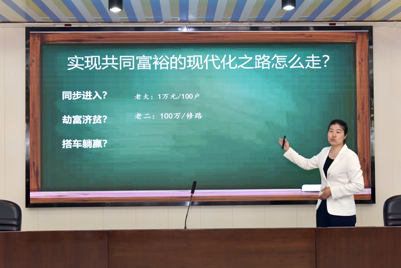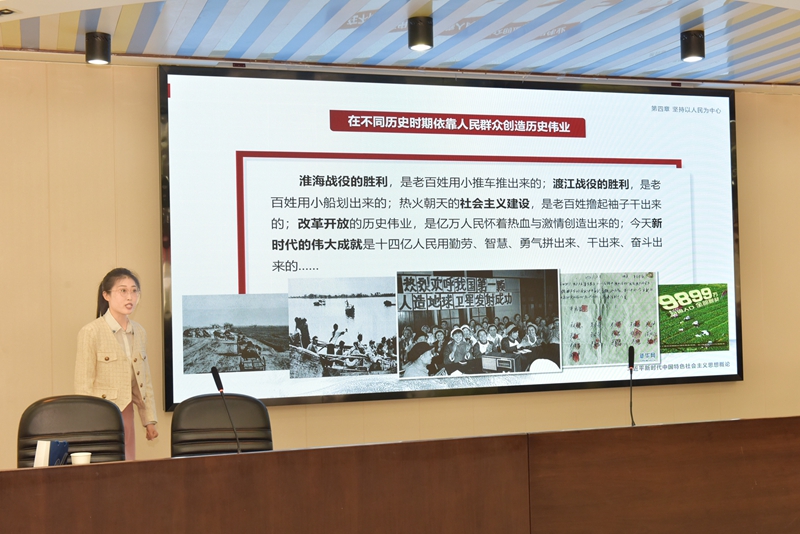 在教学展示环节,第三届全国高校思政课教学展示活动一等奖获得者、北京工业大学马克思主义学院教师赵聪聪,ac米兰马克思主义学院教师姜晓静分别作了“实现共同富裕的现代化之路怎么走”“江山就是人民,人民就是江山—— 习近平总书记和中国共产党人的人民情怀”教学展示。